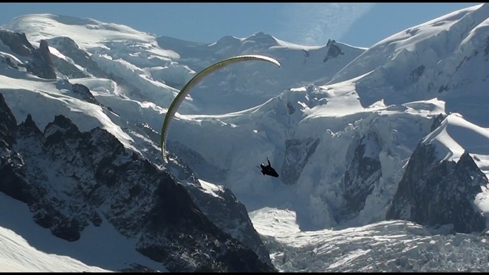 Parapente sur fond de Mont Blanc.