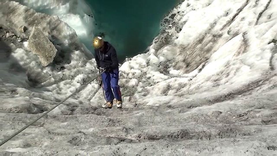 École de glace sur la Mer de glace, dans le secteur de la bédière et des Moulins, avec Thibault et Maël.